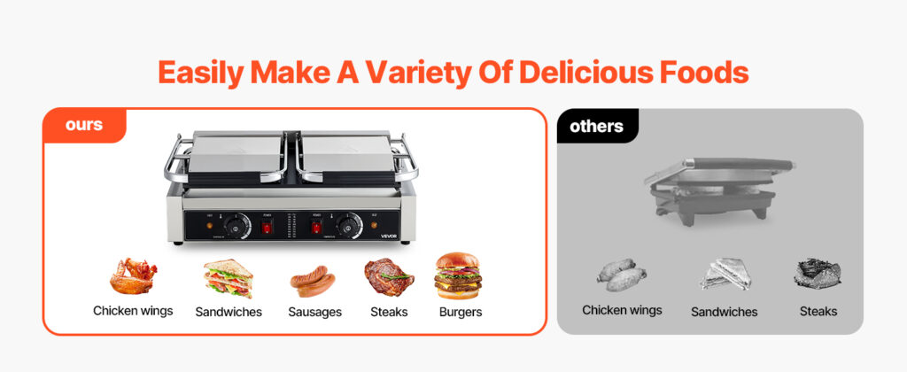 Your kitchen’s new best friend for fast, tasty, café-style sandwiches right at home. This powerful appliance grills from both sides at once, saving you time while ensuring crispy, golden perfection every single time.